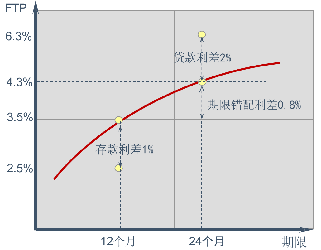 存贷款期限匹配是一种特殊的情况,期限错配是更一般的情况。假定一年期资金的 FTP 利率为 3.5%,两年期资金的 FTP 利率为 4.3%。
